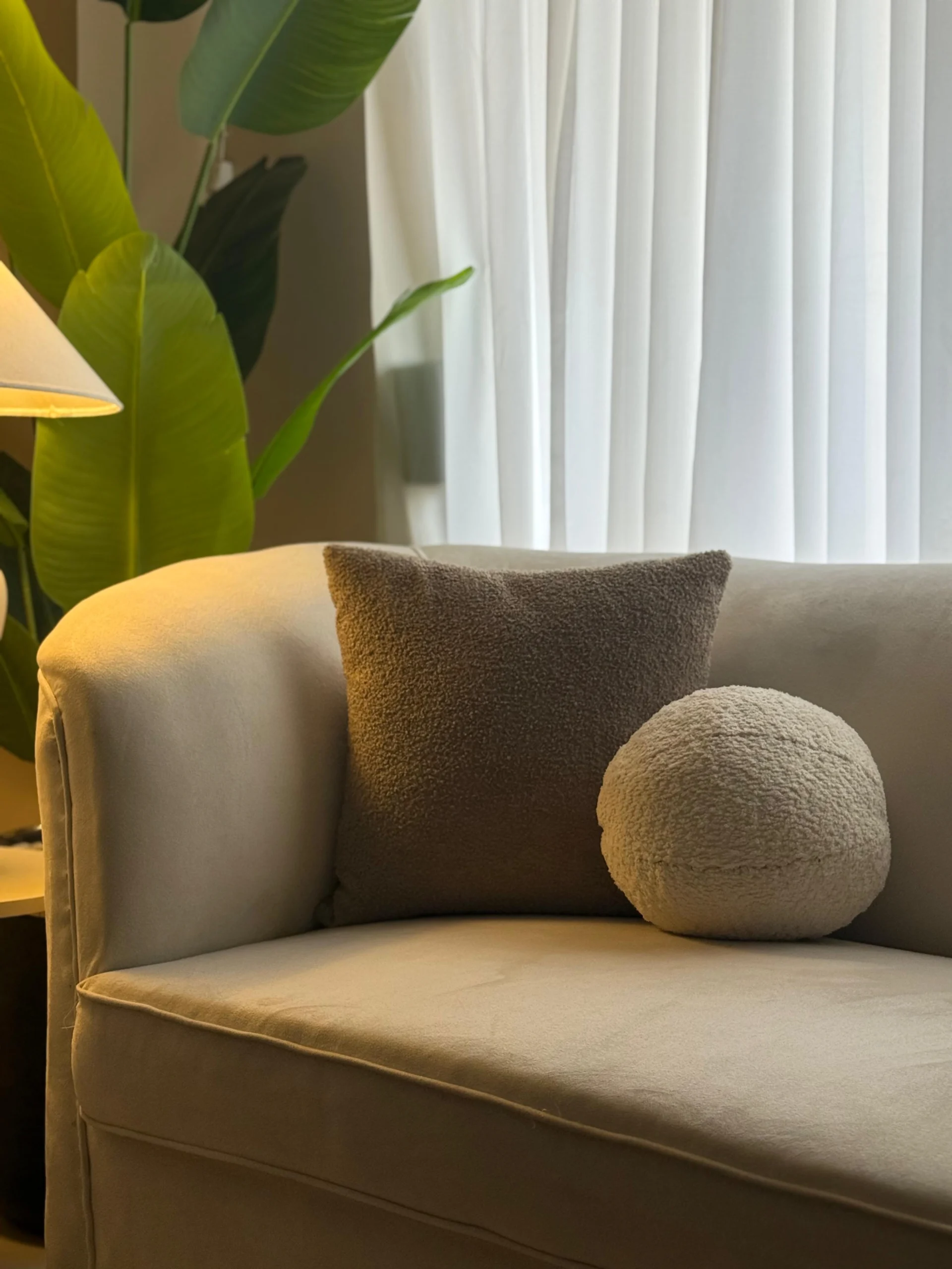 Soft, stylish, and timeless — the Beige Bouclé Ball Cushion adds cozy texture and neutral elegance to any space. Perfect for modern and minimalist interiors.