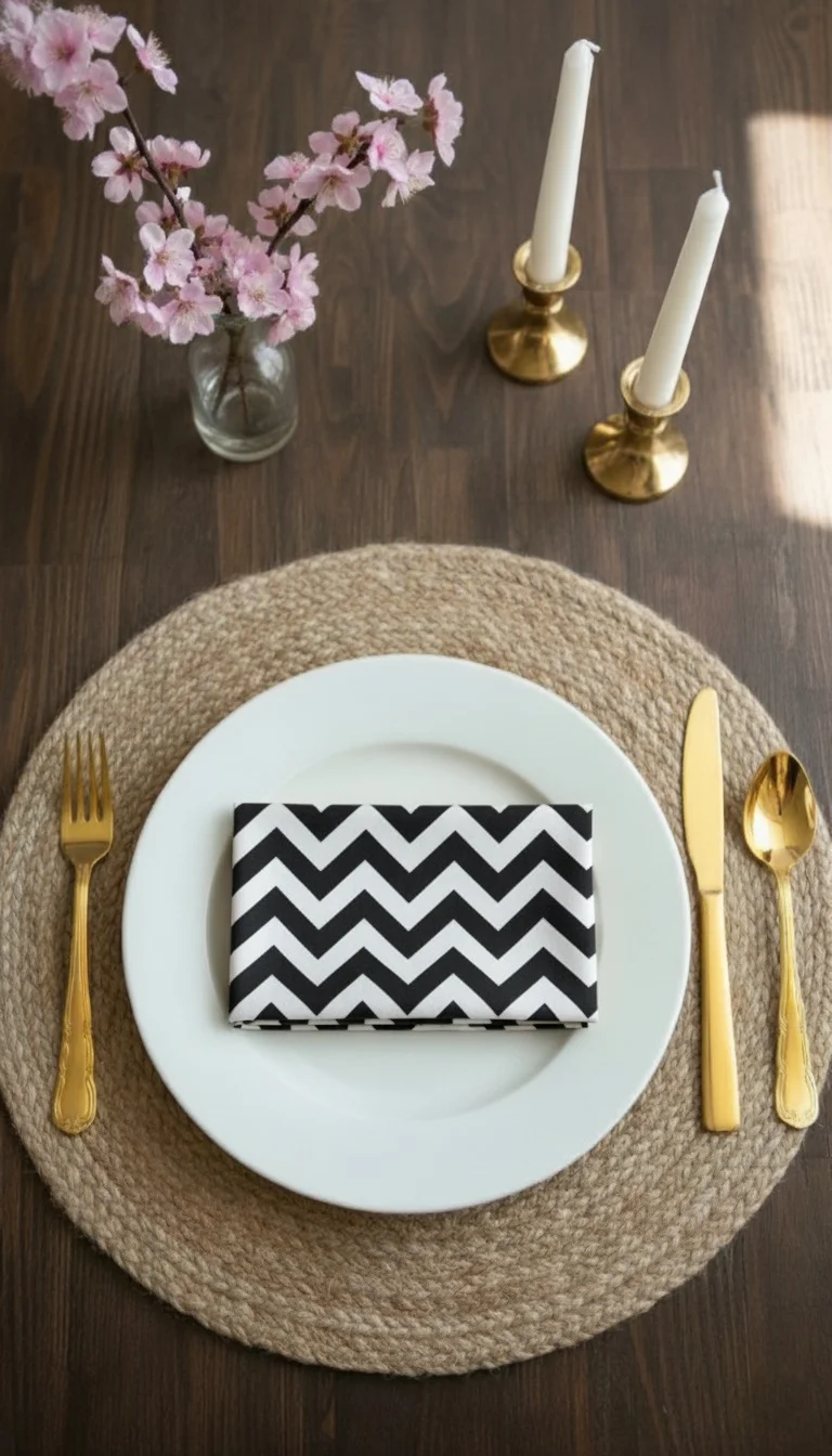 Elevate your dining table with the sleek, modern style of our Black and White Thin Chevron Napkins. Featuring a refined chevron pattern with slim, crisp lines, these napkins bring a contemporary touch to any table setting. The classic black-and-white palette makes them versatile, elegant, and perfect for both casual meals and formal gatherings.