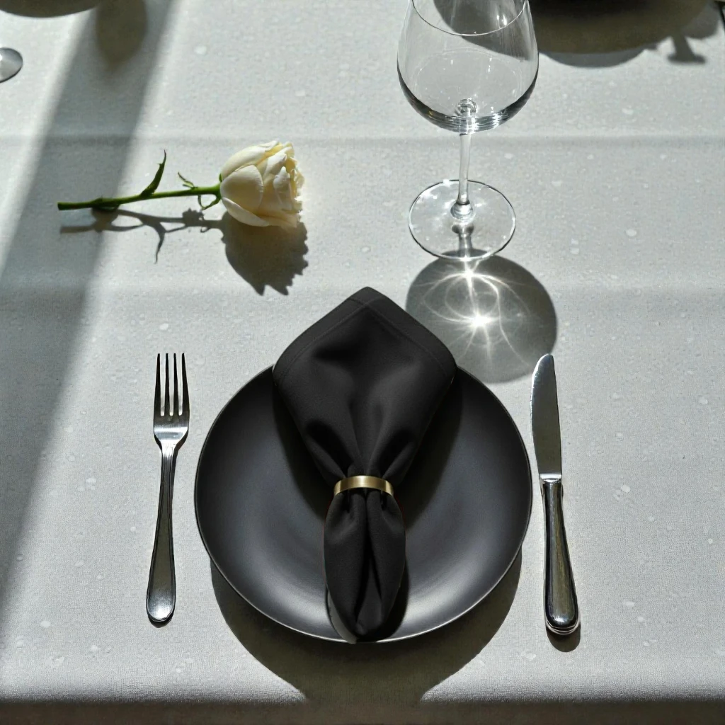 Add a touch of sophistication to your dining experience with our Black-Color Napkin, crafted from luxurious velvet fabric. The soft, rich texture of velvet enhances any table setting, making it perfect for both casual dinners and elegant gatherings. Measuring 14×14 inches, this napkin combines style with practicality—easy to fold, durable, and beautifully finished. Available in a range of solid hues to complement your décor effortlessly.