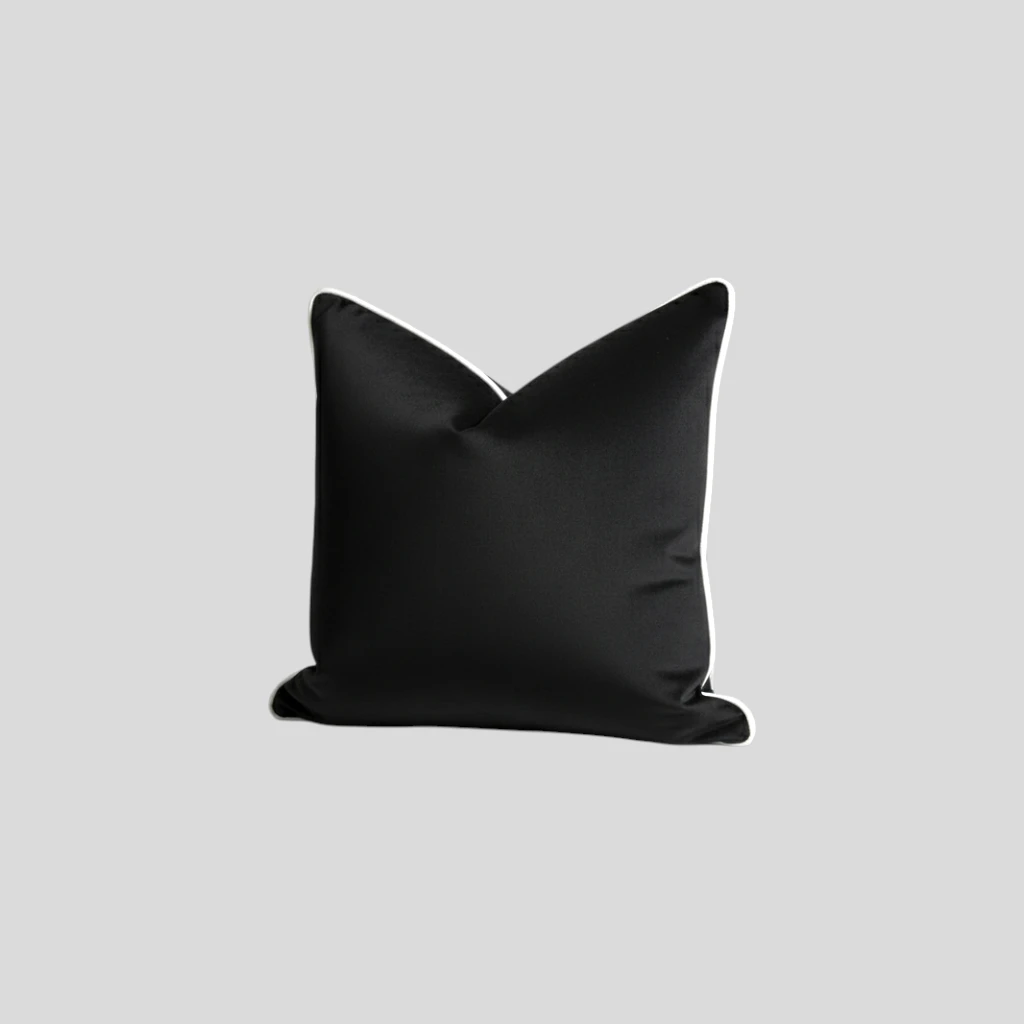 Featuring sharp black and Black piping, chic leather-strap details, these cushions deliver a modern, high-fashion statement to any living space.