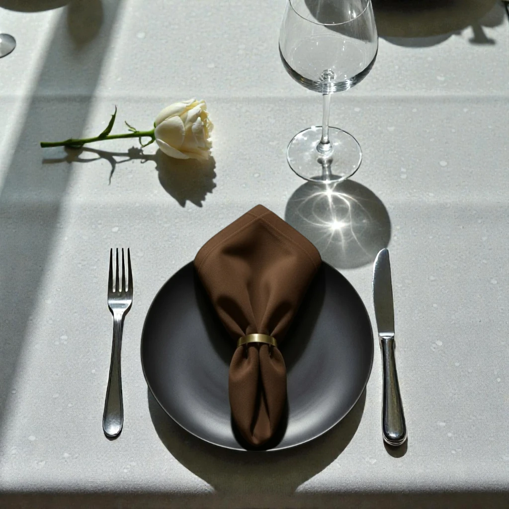 Add a touch of sophistication to your dining experience with our Brown-Color Napkin, crafted from luxurious velvet fabric. The soft, rich texture of velvet enhances any table setting, making it perfect for both casual dinners and elegant gatherings. Measuring 14×14 inches, this napkin combines style with practicality—easy to fold, durable, and beautifully finished. Available in a range of solid hues to complement your décor effortlessly.
