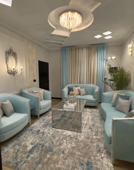 Our double-layer curtains, designed with a soft velvet panel in front and white sheer curtains at the back. This layered setup gives your room a neat, complete, and well-finished look while offering both coverage and natural light control.