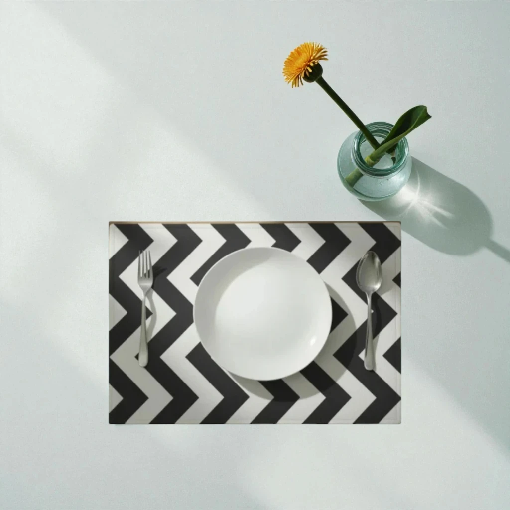 Add modern elegance to your dining setup with our Monochrome Chevron Placement Mat, designed to blend style and practicality effortlessly. Made from Canvas Upholstery fabric with a strong back lining, this mat offers exceptional durability and a premium, textured feel.