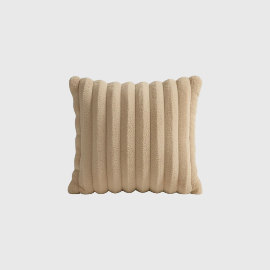 An ultra-soft faux plush cushion featuring a unique ribbed design for added texture and cozy elegance.