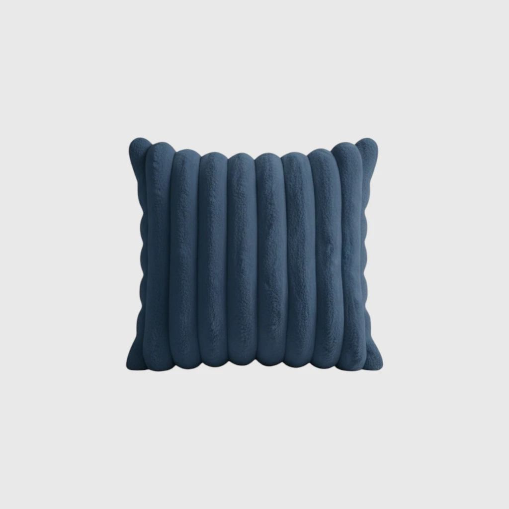 An ultra-soft faux plush cushion featuring a unique ribbed design for added texture and cozy elegance.
