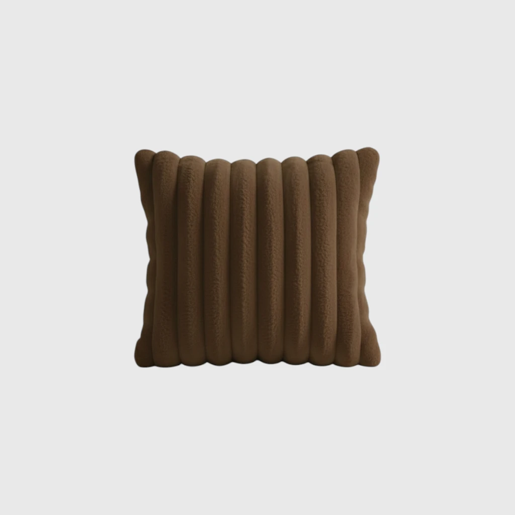 An ultra-soft faux plush cushion featuring a unique ribbed design for added texture and cozy elegance.