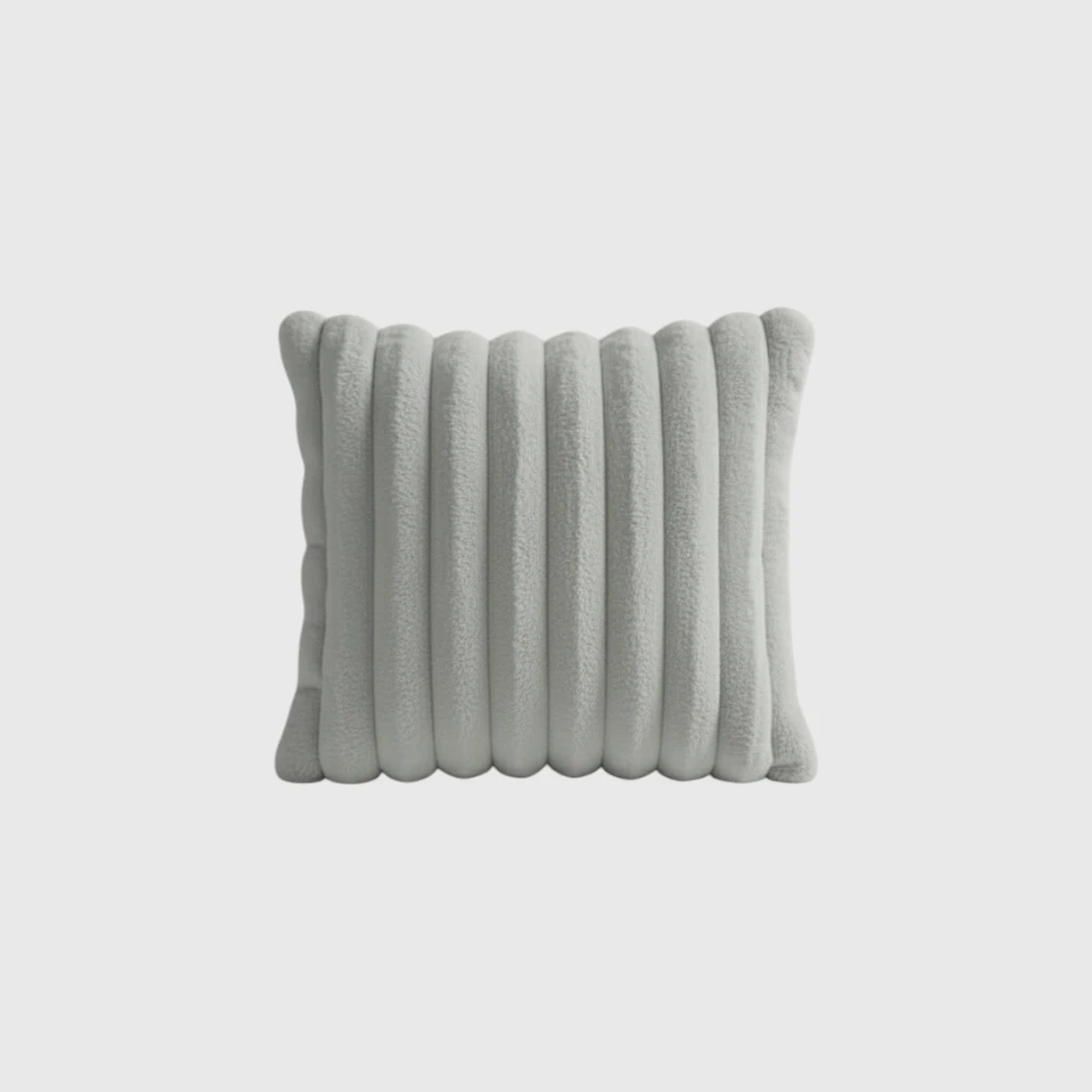 An ultra-soft faux plush cushion featuring a unique ribbed design for added texture and cozy elegance.