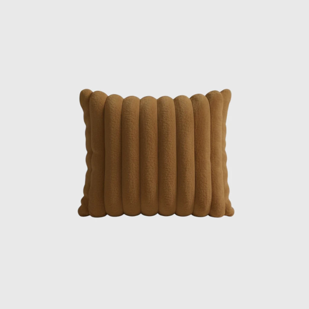 An ultra-soft faux plush cushion featuring a unique ribbed design for added texture and cozy elegance.