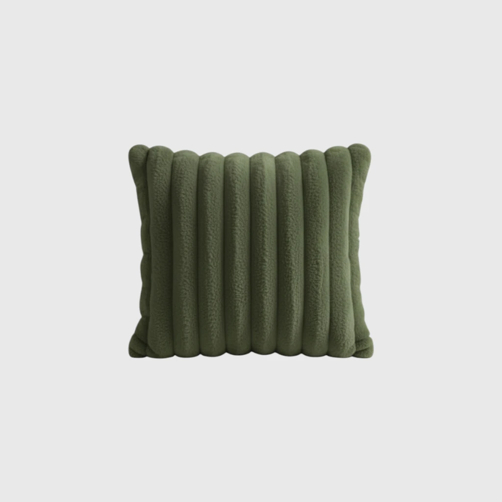 An ultra-soft faux plush cushion featuring a unique ribbed design for added texture and cozy elegance.