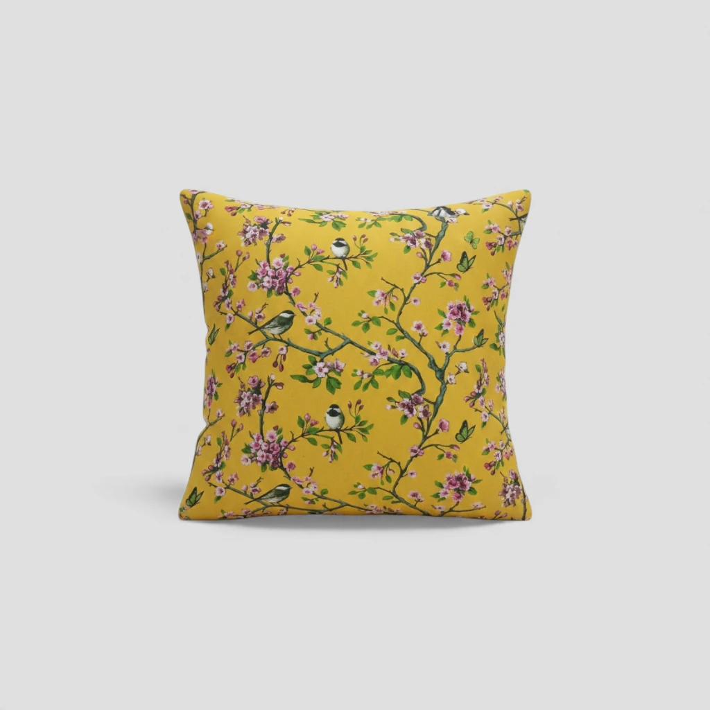 Spring Yellow Chinoiserie Bird Cushion Cover