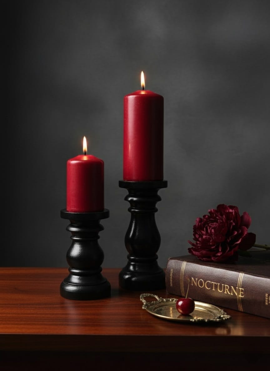 The Black Candle Holder set brings a timeless blend of contrast and sophistication to your décor. Expertly crafted with a smooth, elegant finish, this duo perfectly balances classic charm and modern minimalism. Ideal for pillar candles, each piece adds warmth and a refined touch to your living room, dining table, or special occasion setup.